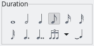 The note duration is set in the submenu Beat → Duration or the "Duration" edit toolbar section.