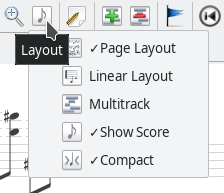 The first button in the list is Page Layout. Its alternative is the second button: Linear Layout. Page layout displays the tablature and scores like on the paper sheets, with line breaks. On the other side, linear view views the instrument in a single line, expanding to the right.