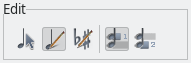 The last two entries in the Edit menu (or the first two icons in the Edit Toolbar) select the voice you want to edit: Voice 1 or voice 2.