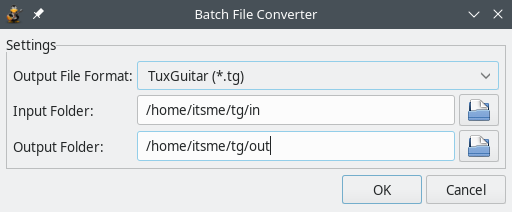 The Batch File Converter allows you to convert a number of files from various file formats (*.gpX, *.ptb, *.tef, *.tg) into one destination file format, keeping the file names but changing the format (and the extension of a file).
