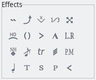 As you already know, playing guitar (and any other instrument) isn’t just playing the notes in the right duration and dynamics. There are several "tricks" that are unique for any instrument. TuxGuitar supports effects specific for guitar and bass guitar.