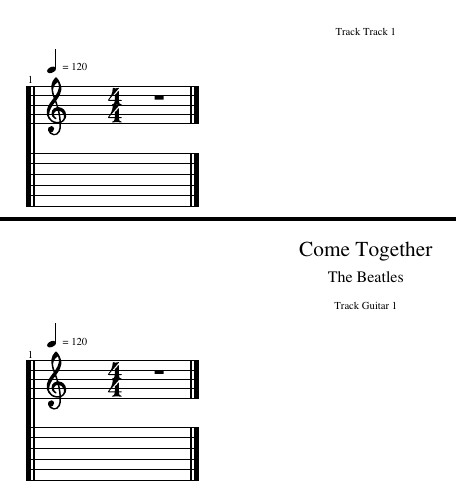 The reason why these settings are important is that whatever you type in the "Name" and "Author" boxes will show up on the first page of your tabs when you print or export them. So, make sure you set them if you plan viewing these tabs outside of TuxGuitar! The difference can be seen below.