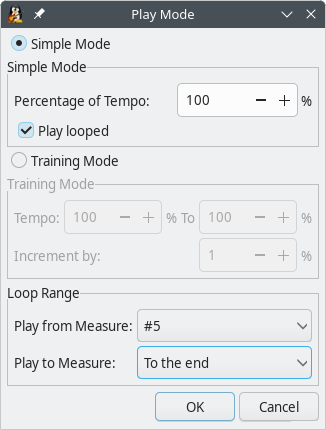 You can also select to continuously repeat the song and to only play a piece of the song (Play looped, Loop Range).